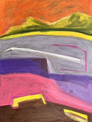 Oil Pastel on board 17"22" 2022 Mountain Pantones An idea sketched I color in… The hips of the hills Bare bones Mountain pantones Call me in Colors of the desert No rest until Crevasses unseen Are now painted -Ashton